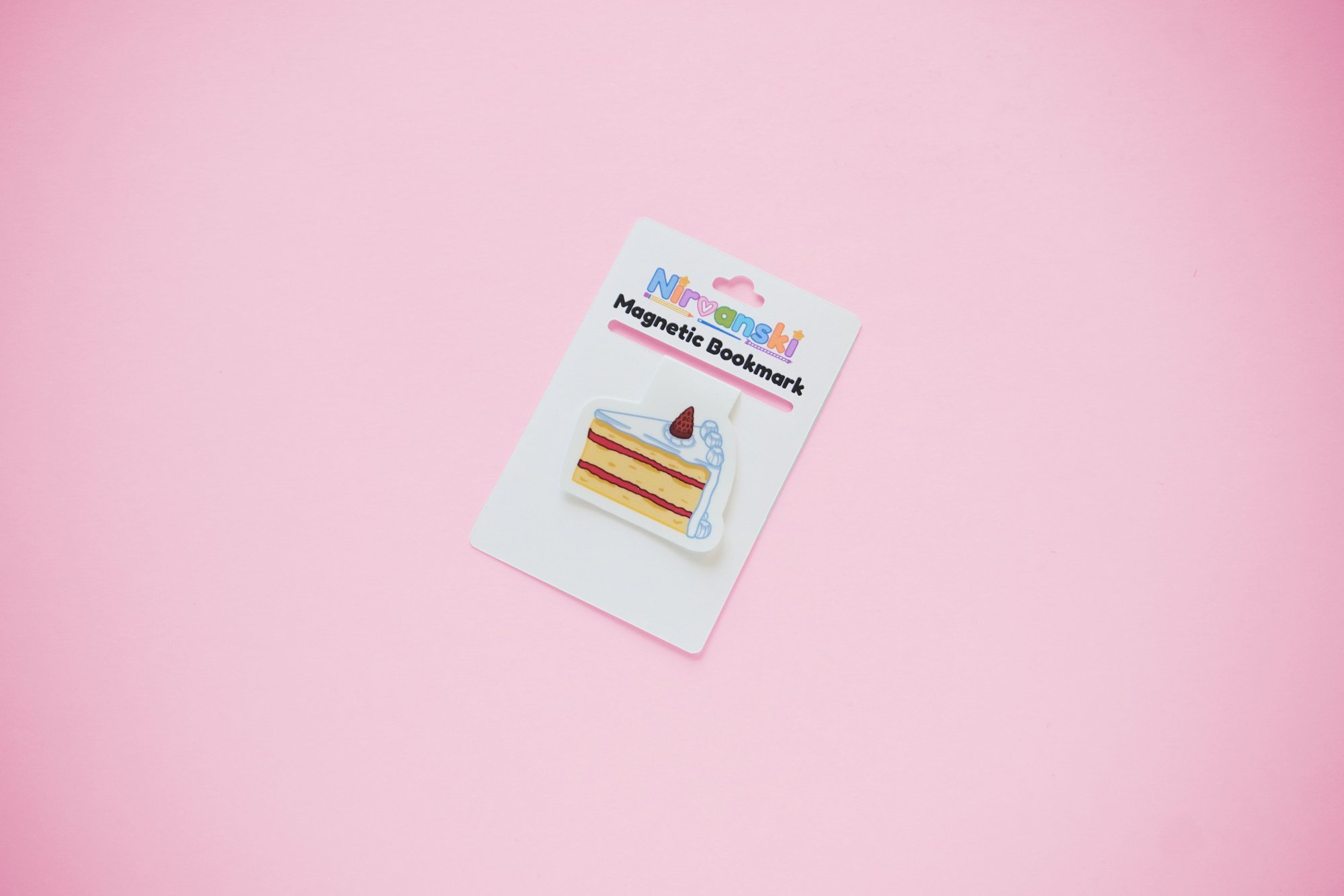 Let's Have A Tea Party! Strawberry Cake Magnetic Bookmark, perfect for keeping your spot!